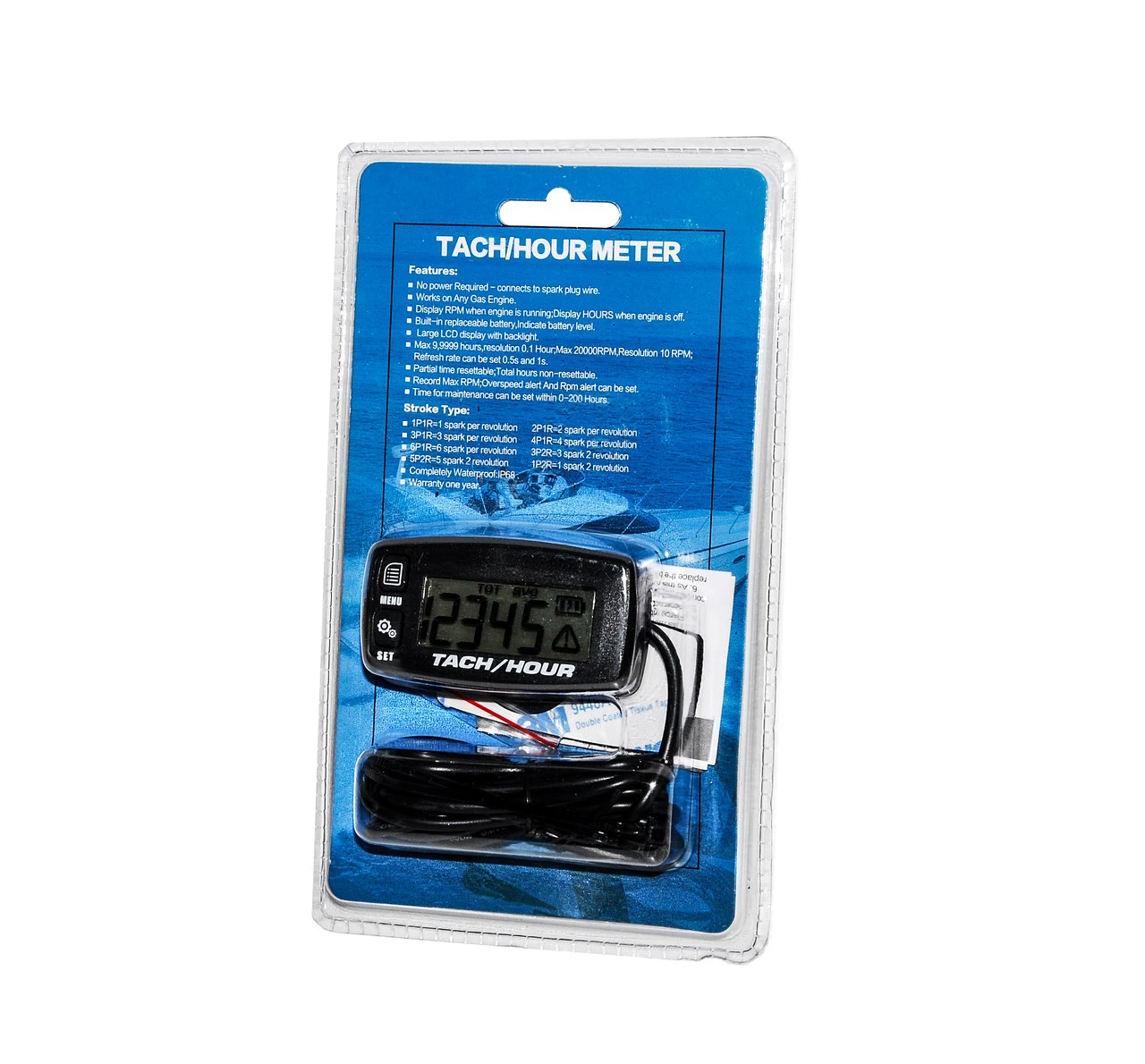 The Tachometer will track engine hours and RPMs for 2 and 4 stroke gasoline powered engines.