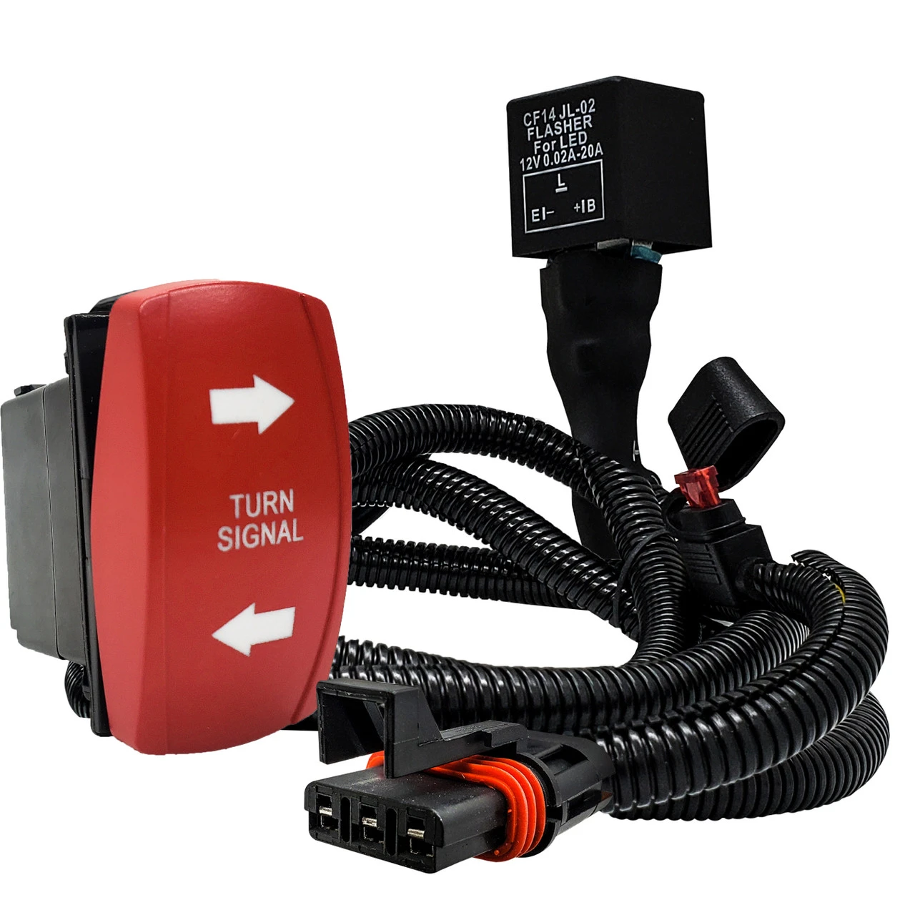- Red Plate Turn Signal etched ON/OFF/ON Rocker switch is included. White LED backlit. 20A OZ-USA Relay switch.