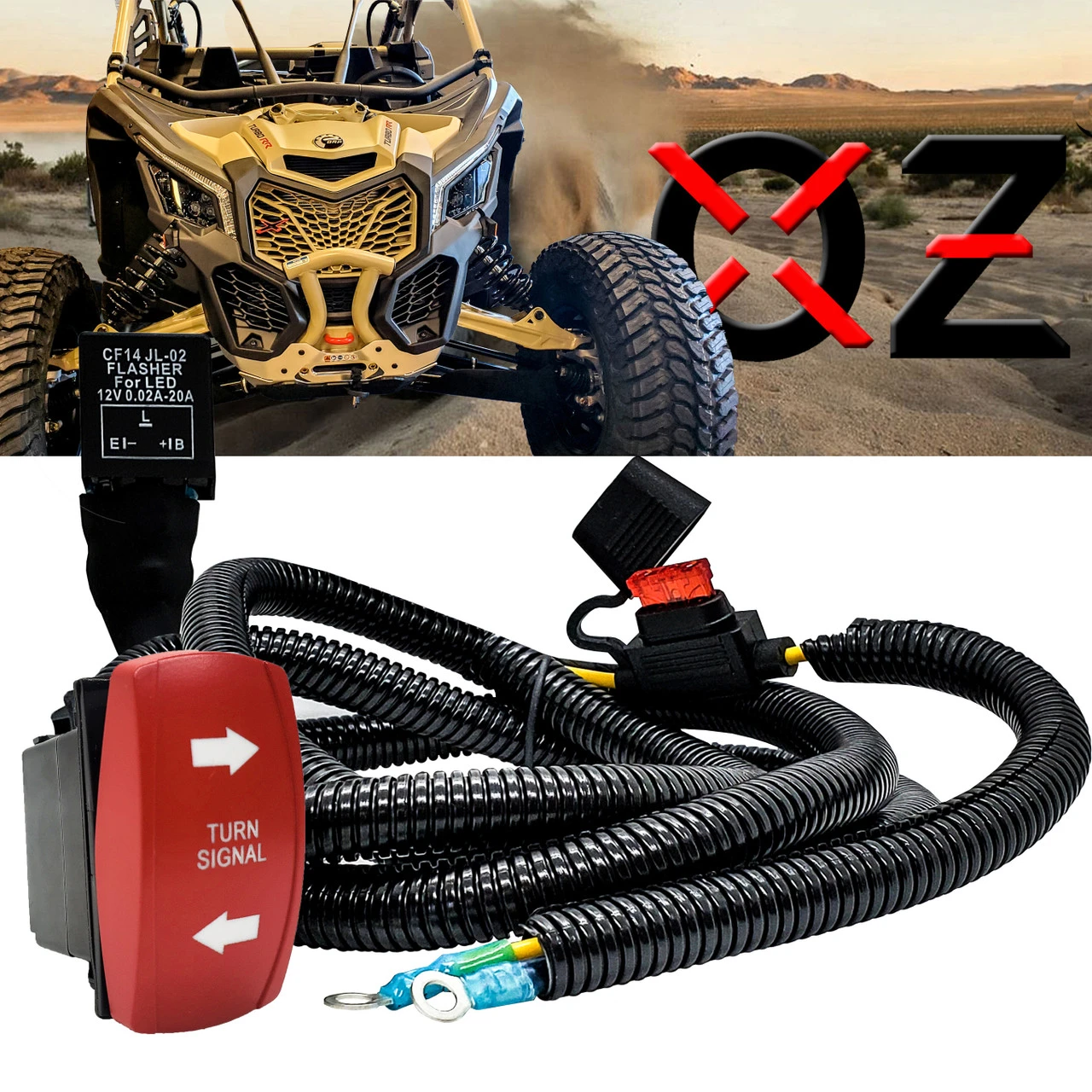 OZ-USA Plug and play power bus bar distribution block turn signal wire kit with On/Off/On turn signal RED Rocker switch and LED flasher relay. 6ft. AWG #14 wire with pre-installed power terminal rings. The turn signal rocker switch is compatible with the Can-Am factory switch panel. Simply plug in your turn signal wires to the back of the rocker switch.