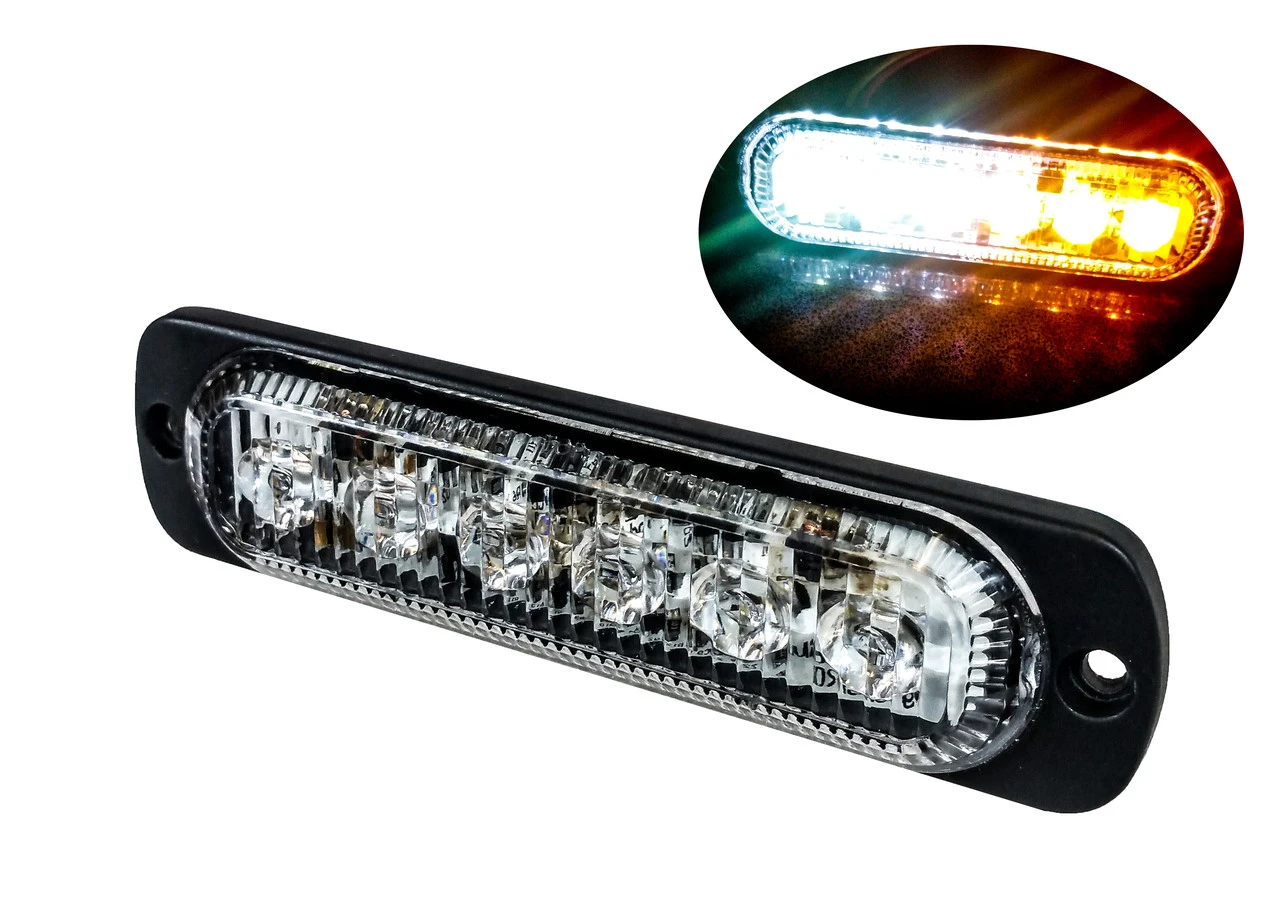 - High Intensity White + Amber 6-LED Strobe Lights. Extremely Bright.