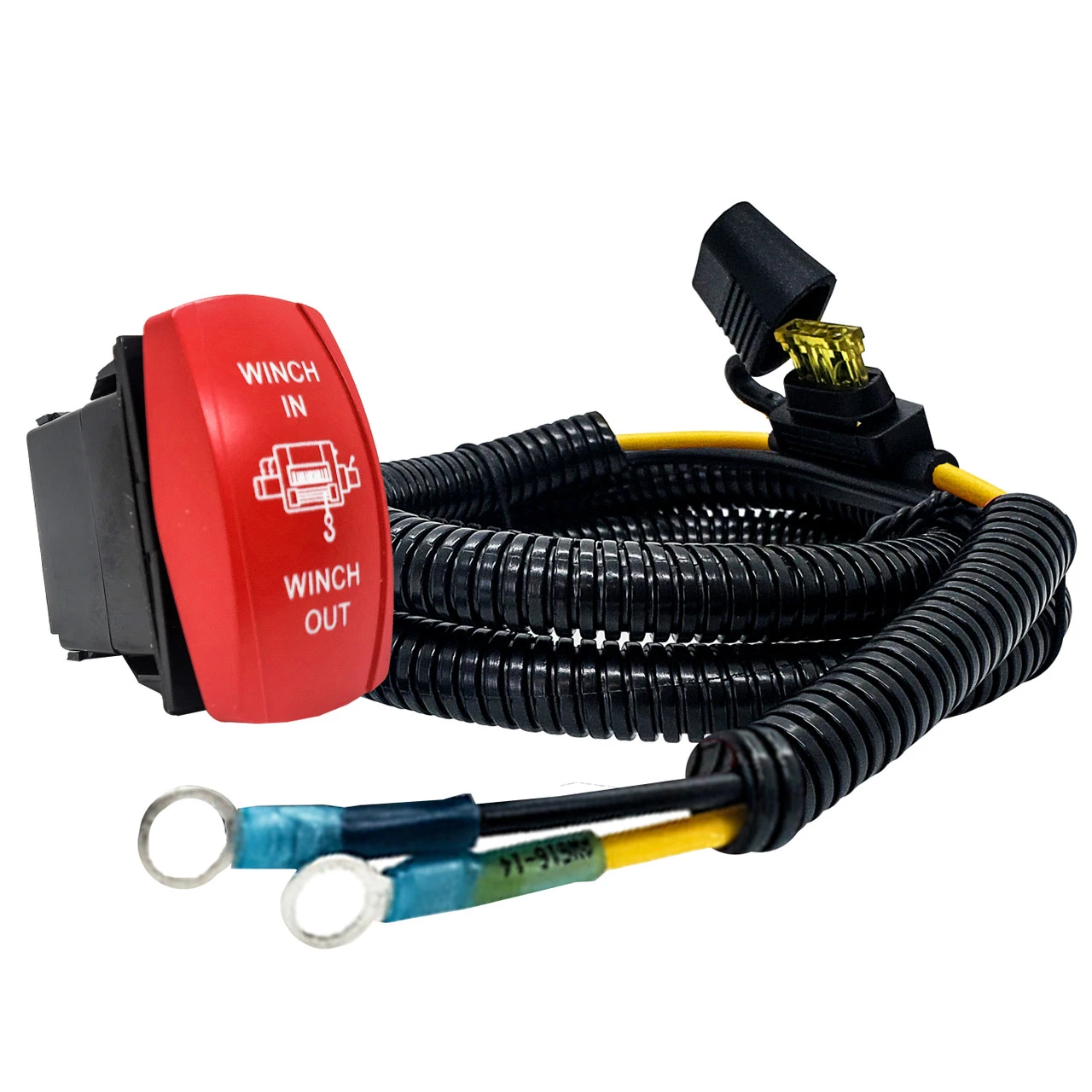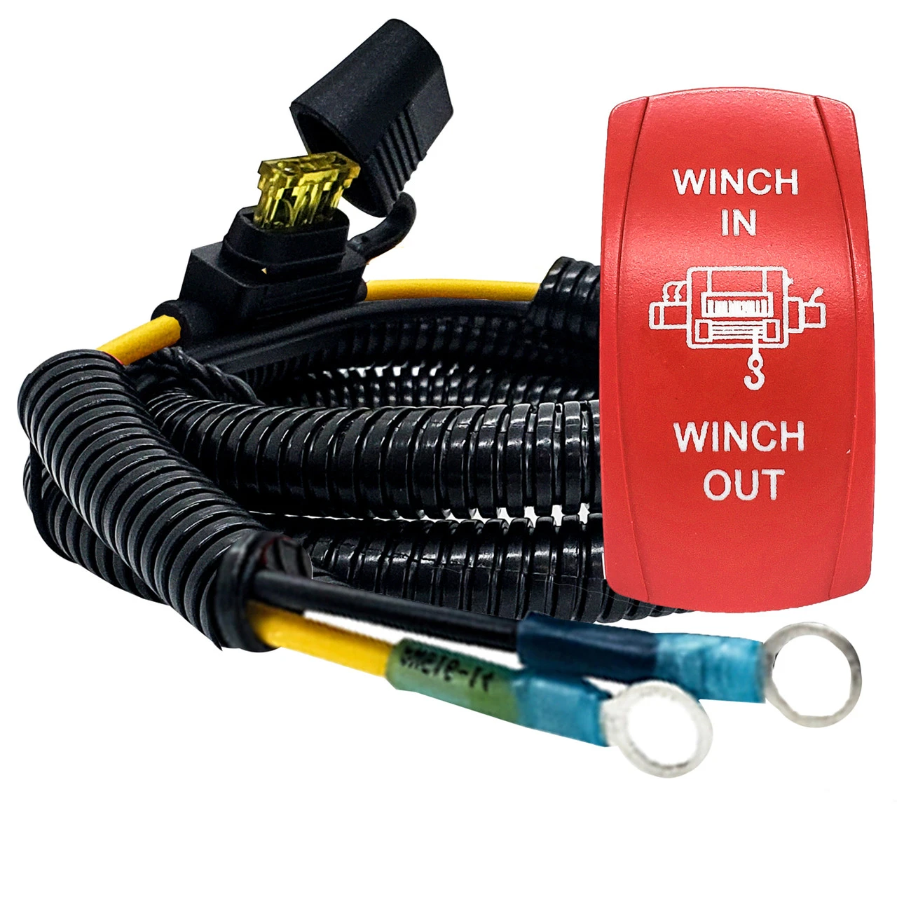 - WINCH IN/OUT laser-etched symbol and vibrant red ON/OFF momentary Rocker switch is included. White LED backlit. 20 Amp 12-Volt 4-PIN.