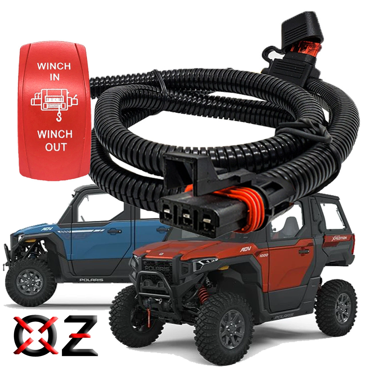 OZ-USA Plug and Play Power Bus Bar Wire Kit with Winch In/Out Momentary Red Rocker Switch – the perfect synergy of convenience and functionality designed exclusively for your 2024 Polaris XPEDITION XP ADV Ultimate, Northstar, and Premium models. 6.0 ft. AWG #14 wire harness with pre-installed Pulse bus bar plug integrated with our 4-Pin LED rocker switch.