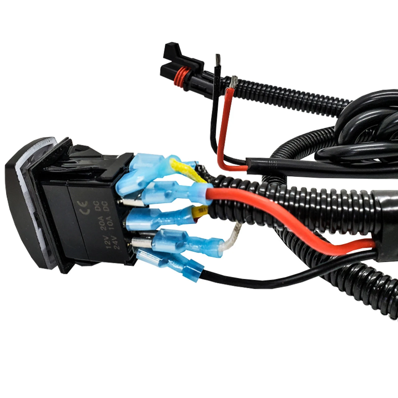 - Wires are protected with split wire loom tubing.